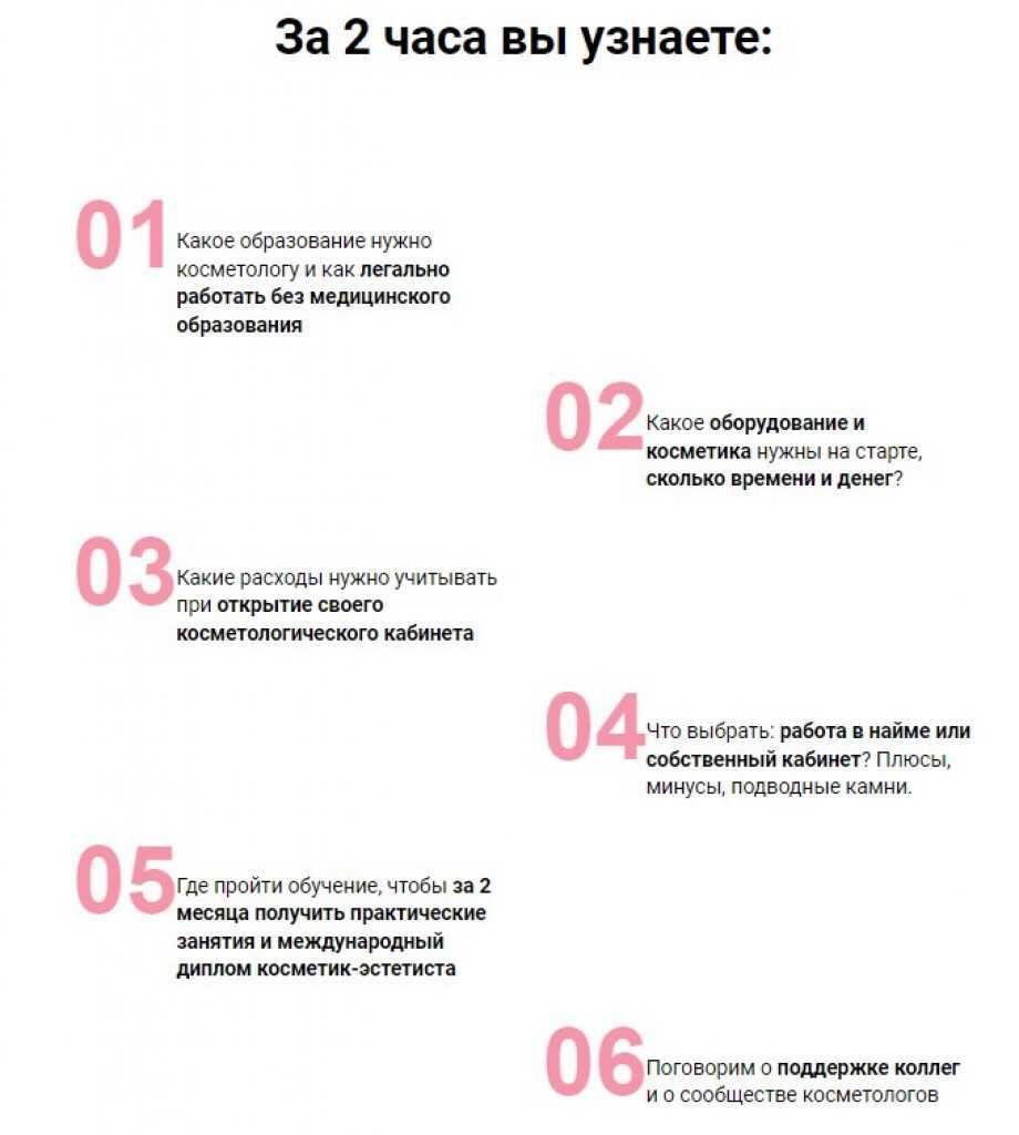 Бесплатный вебинар «Косметолог-эстетист» от новичка до профи и курс по профессии “косметолог-эстетист”. На вебинаре вы узнаете, как за 2 месяца, без мед.образования получить востребованную профессию и зарабатывать от 100.000 руб. в месяц. От новичка до профи. Узнайте, как получить профессию и международный диплом.