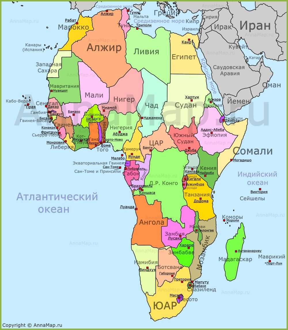 В Африке (с учётом островных государств) расположено 63 страны. Большинство из них долгое время были колониями европейских государств и обрели независимость только в 50-60-ых годах XX века. До этого независимыми были только Египет (c 1922 г.), Эфиопия (c 1941 г.), Либерия (с 1847 г.) и ЮАР (с 1910 г.), но в ЮАР вплоть до 90-х годов XX века сохранялся режим апартеида, дискриминационный к коренному (чёрному) населению.