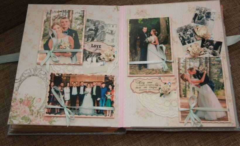 В семейном альбоме каждый разворот можно посвятить определенному периоду, начиная со времени знакомства и первых свиданий. Многие пары хранят записки и письма тех лет, маленькие сувениры и даже билеты с совместной поездки на концерт. Все это обязательно должно найти место в фотоальбоме.