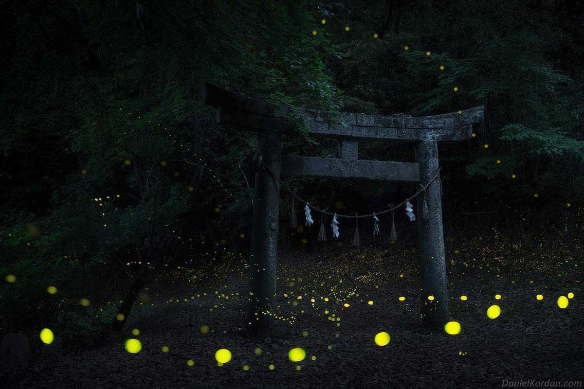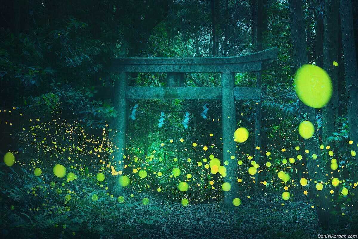 Мне хотелось снять не просто светящихся жучков в лесу, — я хотел, чтобы в кадре присутствовал один из самых узнаваемых символов Японии — ворота Тории. Посоветовавшись практически со всеми местными фотографами, я отправился на самый юг Японии — в горы на севере острова Кюсю в паре часов езды от города Фукуока. В горах раскинулся красивый кедровый лес, посреди которого стоят ворота Тории. Именно такое место я искал!