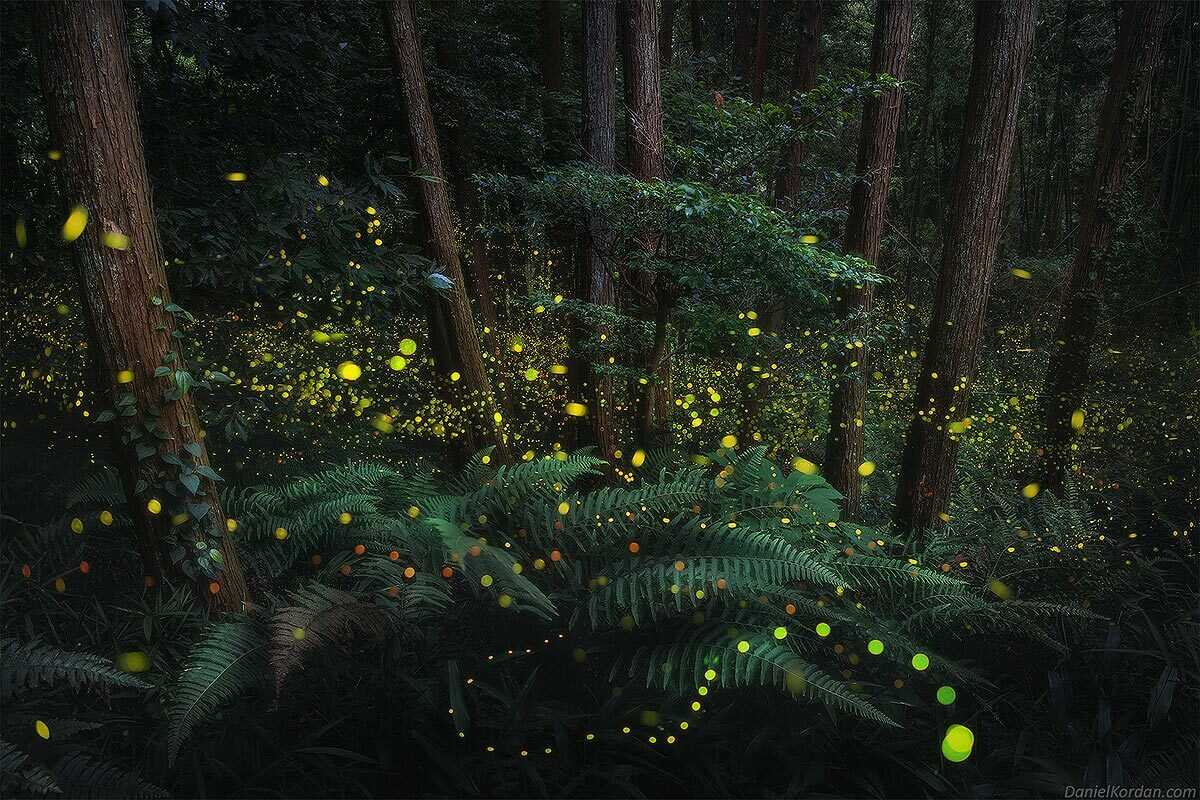 В мире существует более 2000 видов светлячков, и лишь немногие из них обладают интересной для фотографов способностью синхронно загораться короткими световыми вспышками. В Японии обитает один из таких редких видов синхронных светлячков — hime-botaru.
