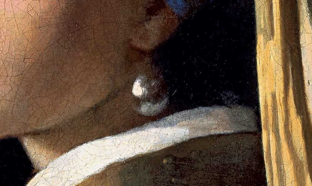 А анализ красок показал, что жемчужная серьга — не что иное, как иллюзия. Художник создал ее при помощи прозрачных и полупрозрачных белых штрихов. У сережки отсутствует контур и нет крючка, за который она крепится на ухо.
