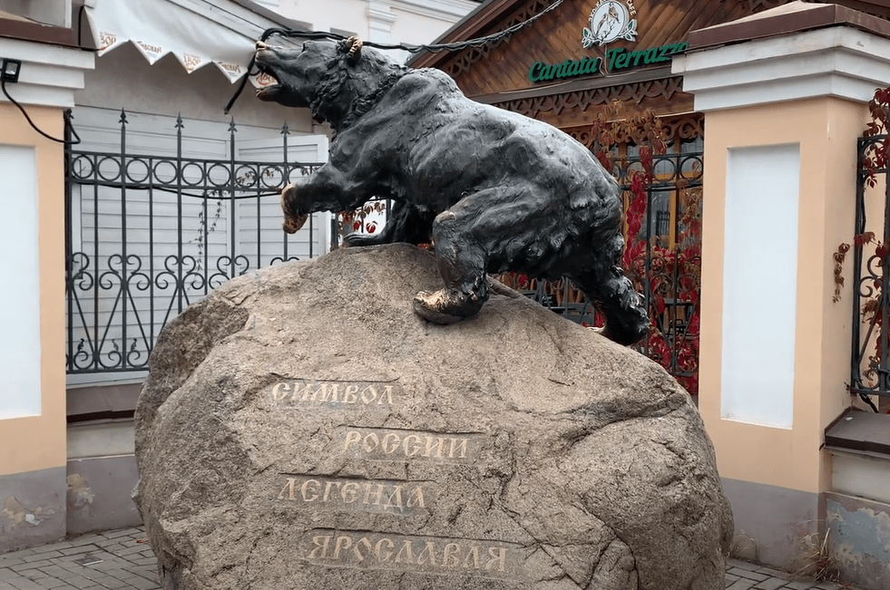 Самым пейзажно-выдающимся местом в Ярославле является мыс Стрелка, который своими очертаниями и в самом деле напоминает стрелу. Именно здесь, по преданию и было расположено поселение непокорных язычников, выпустивших медведя на бой с князем Ярославом. Как подтверждает название города и вообще его существование, зверь тот бой проиграл, а в память подвигу князя на гербе Ярославля красуется медведь с секирой. В 2009 году установлен монумент, изображающий медведя на огромной каменной глыбе.